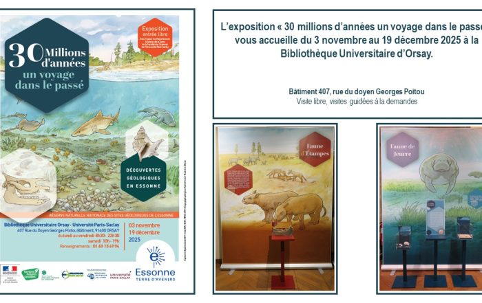 L’exposition “30 millions d’années un voyage dans le passé” est installée à la bibliothèque Universitaire à Orsay du 3 novembre au 19 décembre 2025 (bâtiment 407)