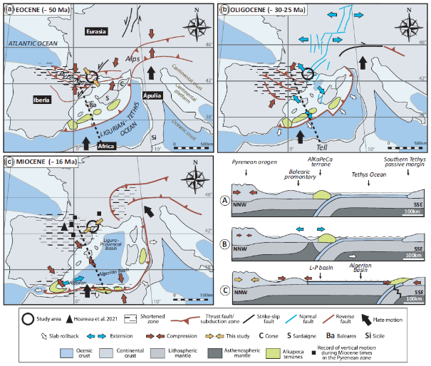 Evolution géodynamique de la Méditerranée occidentale au cours du Cénozoïque (Parizot et al. 2021)