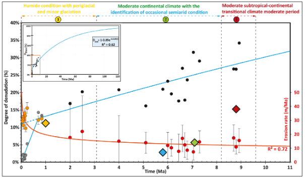 Contexte climatiques d’Europe de l’Est contraint par les variations des taux d’érosion intégré enregistrées par le démantèlement des volcans des Carpates (Dibacto et al., 2020).