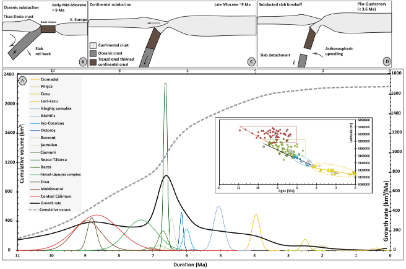 Exemple de corrélation entre le dynamique éruptif et le contexte géodynamique lors des 10 Ma d’années d’activité des Carpates orientales (Dibacto et al., 2020).