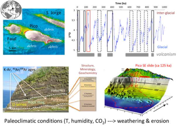 Reconstruction des conditions paléoclimatiques Quaternaires par l’étude de paléosols aux Açores Centrales, et analyse de leurs effets sur l’altération et le dégradation des paysages (transitions interglaciaires notamment).
