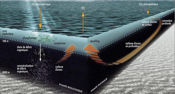 Les mesures du CO2 piégé dans les glaces de l’Antarctique révèlent que la pCO2 de l’atmosphère au cours des périodes glaciaires était ~ 50-100 ppm plus faible que la valeur de pCO2 enregistrée en périodes interglaciaires avant l’activité anthropique. Les études montrent par ailleurs, une étroite corrélation entre la pCO2 atmosphérique, le volume des glaces, et les températures Antarctiques, ce qui suggère la pCO2 comme facteur forçant ou amplifiant les cycles glaciaires/interglaciaires, et met en lumière l’importance des hautes latitudes Sud dans les changements paléoclimatiques rapides. Un élément clé de la circulation thermohaline, est le chemin retour des masses d’eau profondes vers la surface via la divergence antarctique. Ce mécanisme, appelé la « pompe physique », en partie contrôlé par la position latitudinale et l’intensité des vents d’ouest (westerlies), influe sur les transferts de chaleur et de carbone depuis le réservoir océanique profond vers l’océan de surface et l’atmosphère, avec un impact significatif à l’échelle du globe. Par ailleurs, à l’action de la pompe physique s’ajoute celle de la « pompe biologique », correspondant au transfert du Carbone Particulaire (organique ou inorganique) depuis les eaux de surface de l’océan vers l’océan profond via l’activité respective des producteurs primaires et du plancton calcaire, qui pourrait expliquer une part importante des changements de pCO2 atmosphérique au cours des dernières déglaciations. Cependant, peu d’études s’intéressent à l’action couplée des pompes physiques et biologiques dans le passé. Par ailleurs, les relations entre mécanismes des pompes physiques et biologiques en surface avec les compartiments plus profonds de l’océan sont peu contraintes. Les reconstitutions des changements du cycle du C dans les masses d’eau intermédiaires et profondes, et des transferts vers la surface s’appuient sur le développement récent de traceurs géochimiques mesurés dans les fossiles (foraminifères benthiques notamment) tels que les rapports élémentaires (Mg/Ca, Sr/Ca, U/Ca) et/ou le 14C. Sachant que plus de 90 % du carbone organique piégé dans le milieu marin se trouve dans les sédiments de la marge continentale, nos recherches visent aussi à améliorer les budgets de carbone côtier, en particulier dans les fjords, qui sont des ‘hotspots’ pour le stockage à long terme du carbone organique d’origine marine et terrestre.