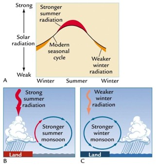 Le système de mousson se caractérise par un balancement saisonnier méridien des vents et des précipitations à l’origine d’hivers secs et d’étés humides sous les tropiques. Ce système est engendré par la différence thermique qui se créée saisonnièrement entre l’océan et le continent et entre les deux hémisphères. Il joue ainsi un rôle essentiel dans la distribution globale de chaleur et d’humidité. Les études paléoclimatiques montrent que la dynamique des systèmes régionaux de mousson a varié au cours du temps et notamment au cours du Quaternaire en fonction des paramètres orbitaux de la Terre et du forçage de l’insolation. Il s’avère que des processus complexes et des interactions impliquant par exemple l’étendue des calottes de glaces, les changements de pCO2 atmosphérique, et la dynamique de l’océan, ont également contribué à la variabilité de la dynamique de la mousson au cours du temps. Or, sur les continents, les variations passées des régimes de précipitation et de vent déterminent la vulnérabilité des roches à l’érosion en influant sur le débit des fleuves, le type de végétation et les types de sols. Elles affectent ainsi l’altération chimique des zones sources, la mobilisation du matériel sédimentaire sur les continents ainsi que son transfert fluviatile et/ou éolien jusqu’aux bassins océaniques. Dans les océans, elles génèrent d’importants changements dans la dynamique des eaux de surface et notamment dans la profondeur de la thermocline/nutricline, qui impactent considérablement les producteurs primaires (coccolithophores notamment). C’est dans ce contexte que l’étude multi-outils (sédimentologique, minéralogique, géochimique et micropaléontologique) d’archives sédimentaires prélevées dans les contextes de mousson africaine, indienne et asiatique nous permettent d’aborder sous différents aspects, la question de la variabilité du système de mousson, et ceci à différentes échelles spatio-temporelles.